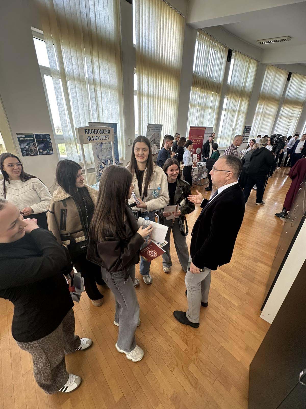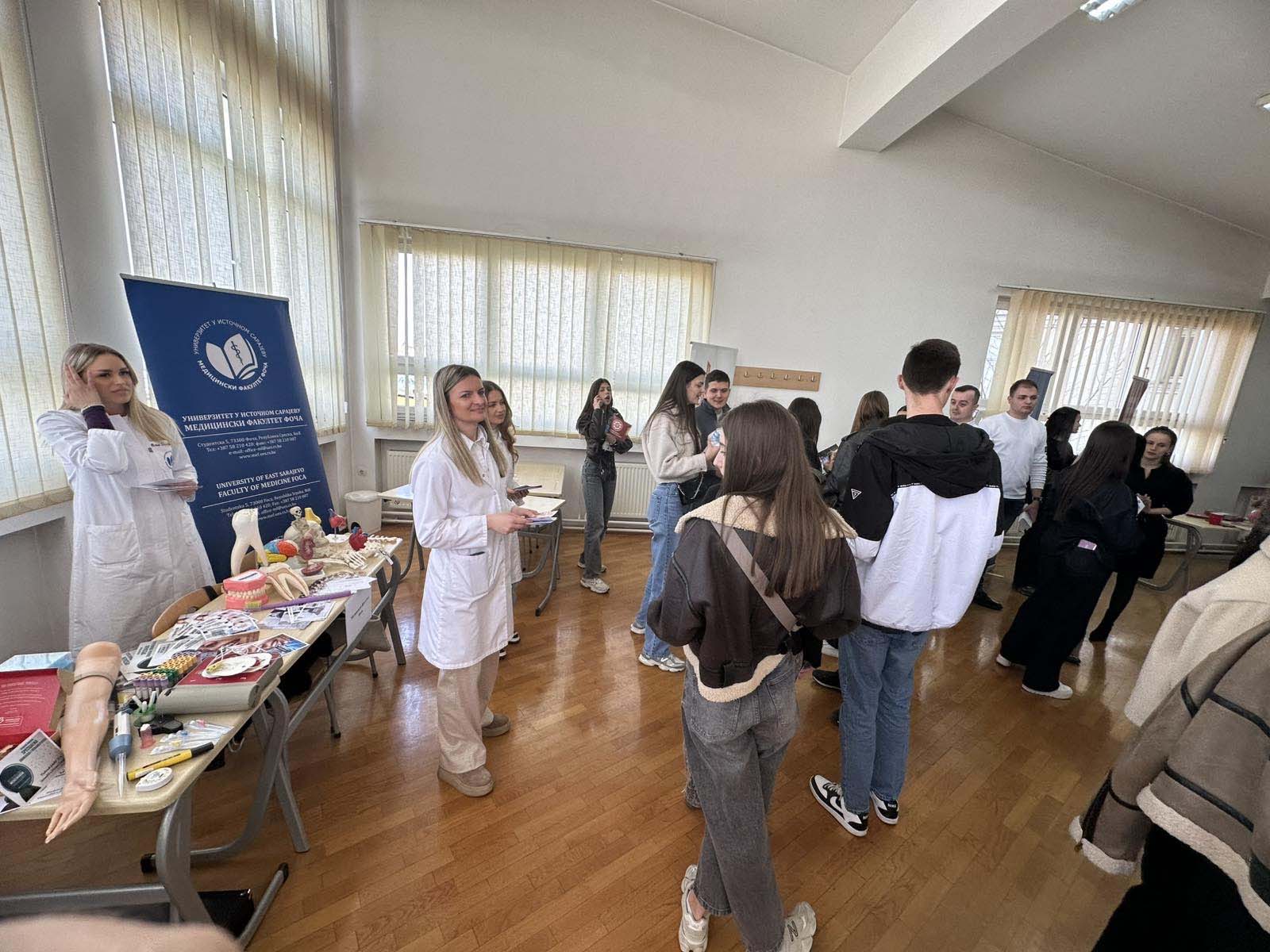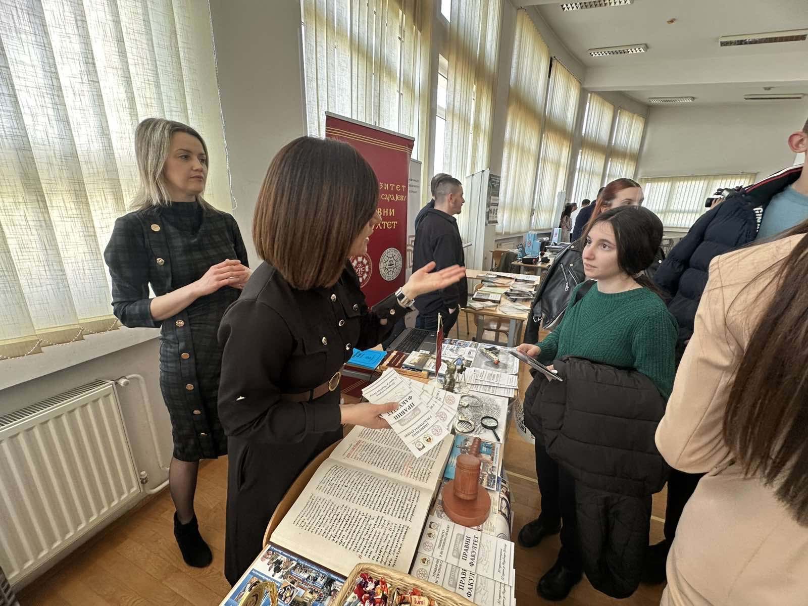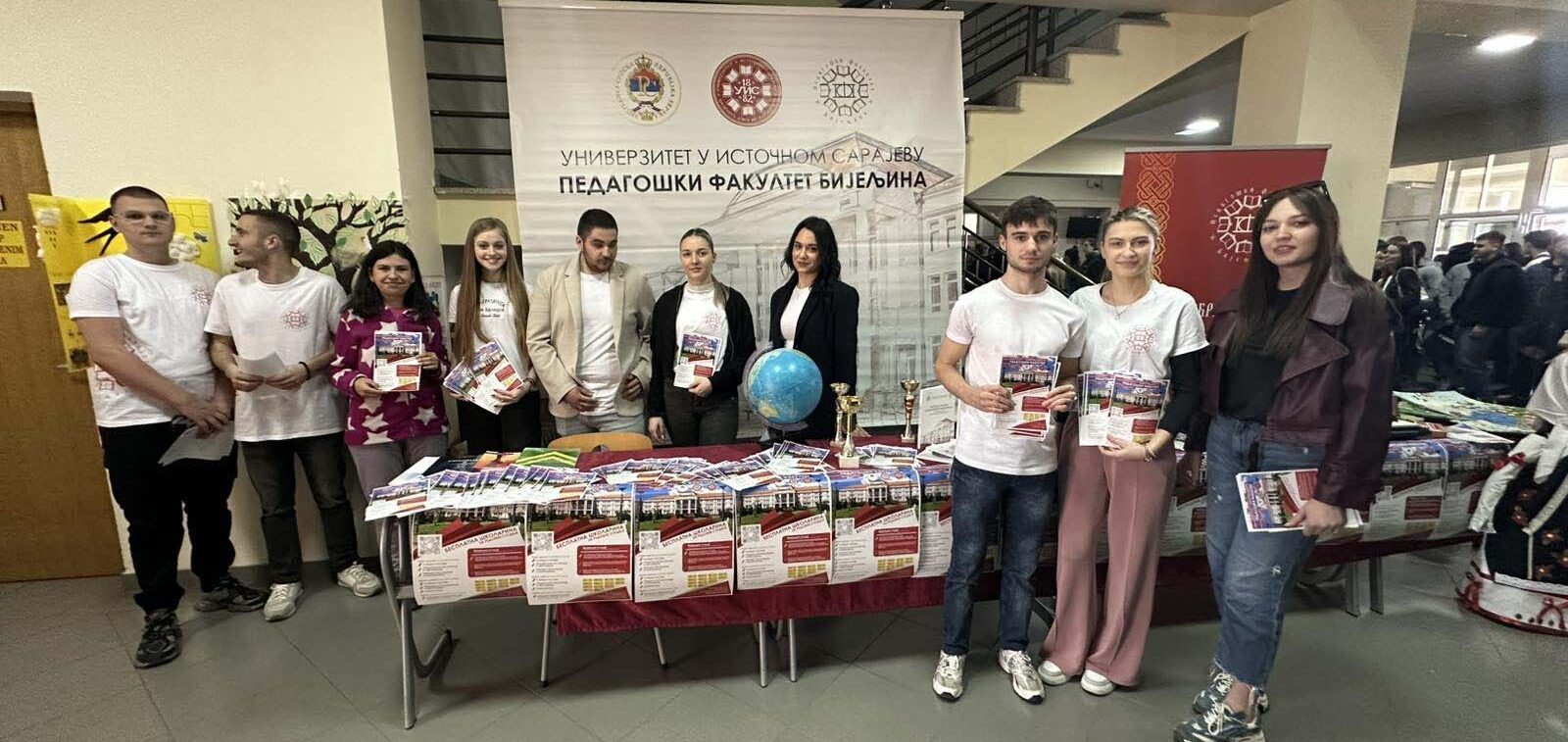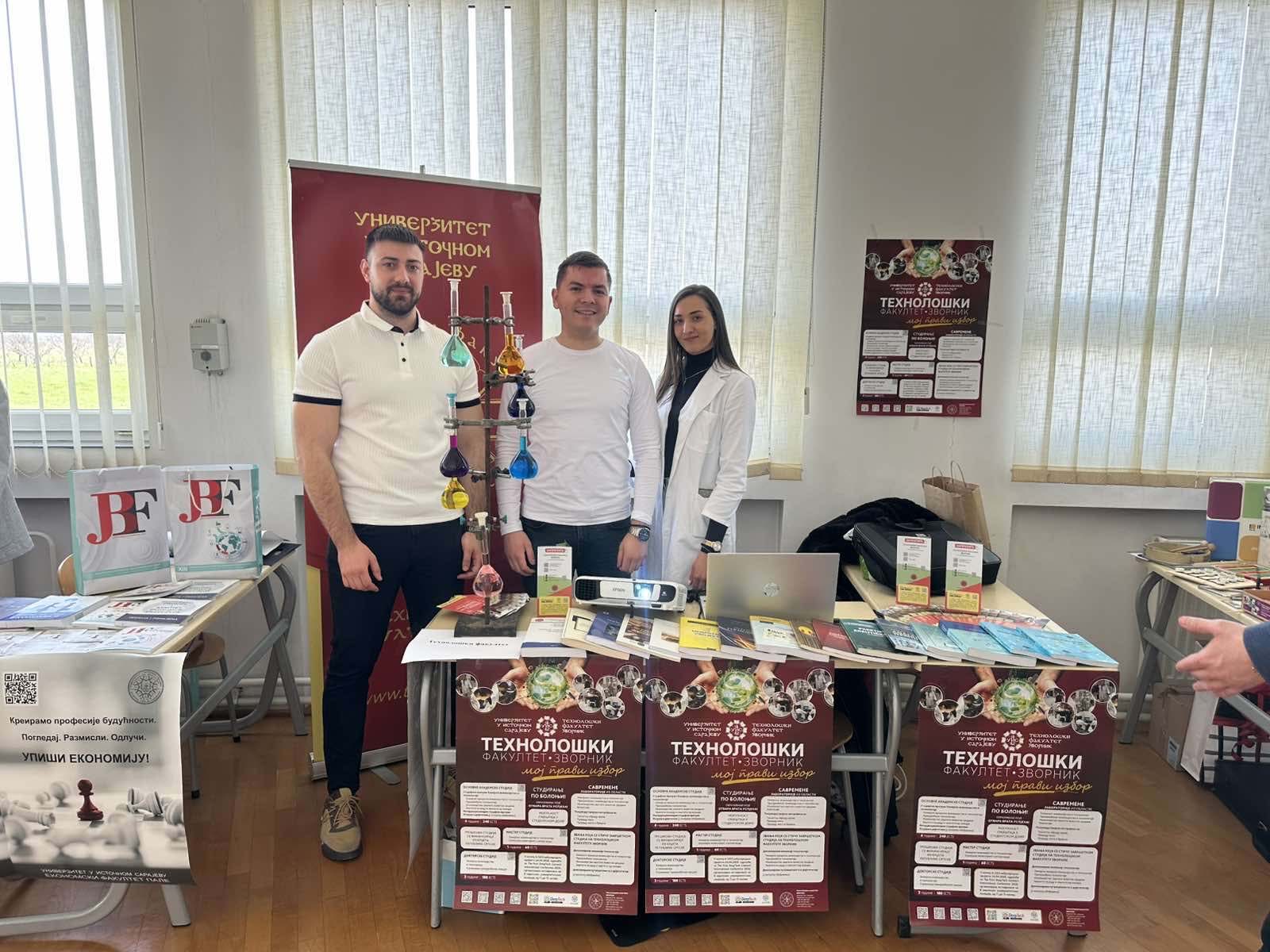 Наставници и студенти Универзитета у Источном Сарајеву представили су матурантима из Бијељине, Угљевика, Лопара, Зворника, Шековића, Сребренице, Милића и Власенице студијске програме које могу да изаберу на нашем универзитету, те их упознали са погодностима студирања као што су бесплатне школарине, бесплатан смјештај у студентским домовима, обављање студентске праксе, програми међународне размјене, љетне школе, такмичења, стипендије.