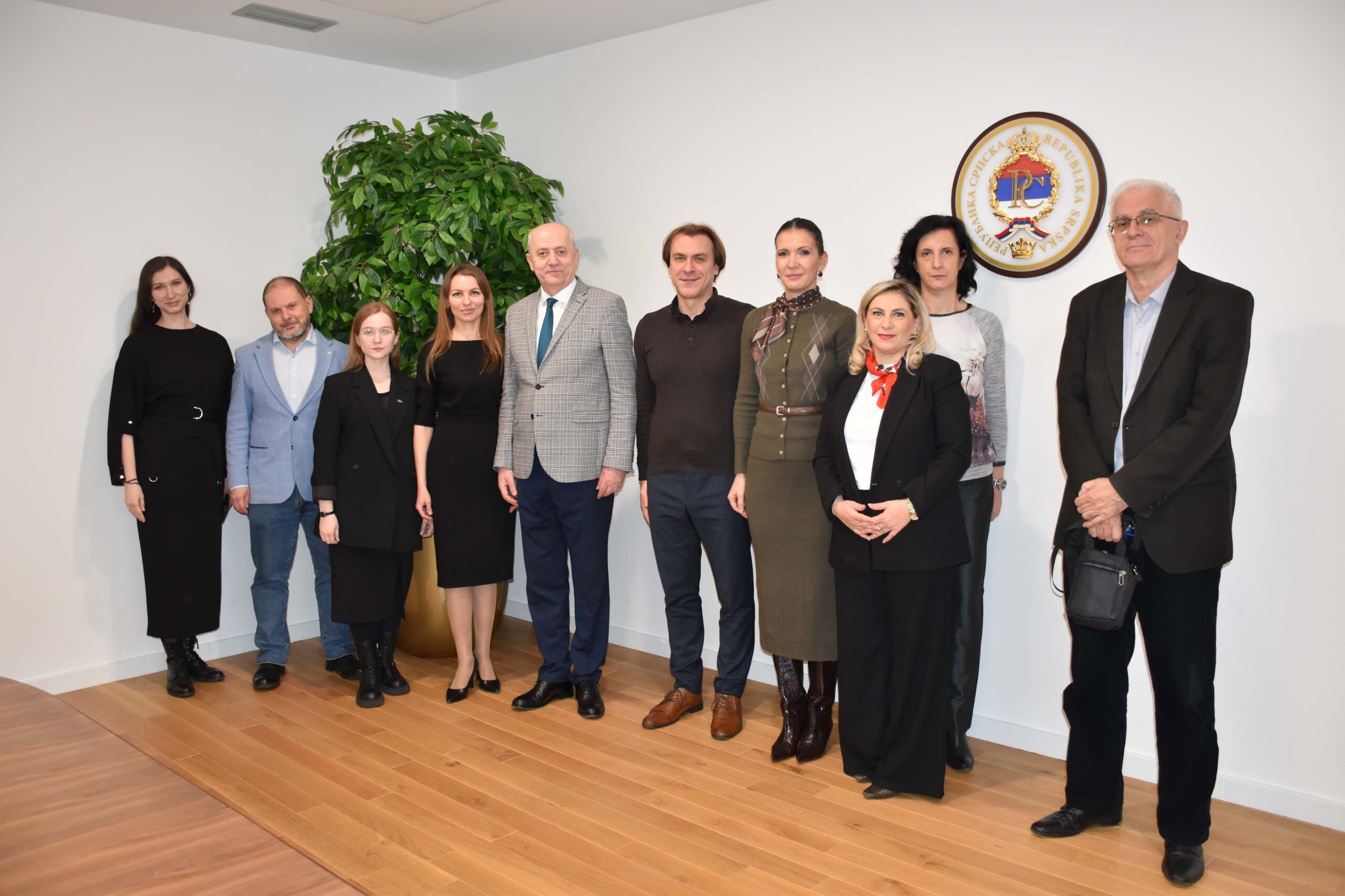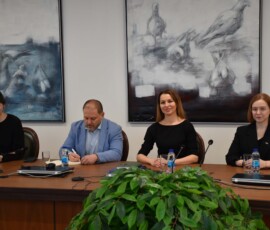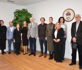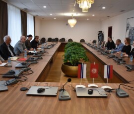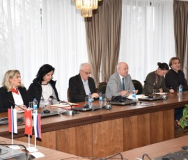 Rektor Kulić upoznao je goste sa istorijom, razvojem i modelom funkcionisanja Univerziteta u Istočnom Sarajevu, naglasivši specifičnost integrisanog sistema u kojem su fakulteti i akademije geografski raspoređeni u devet gradova istočnog dijela Republike Srpske.